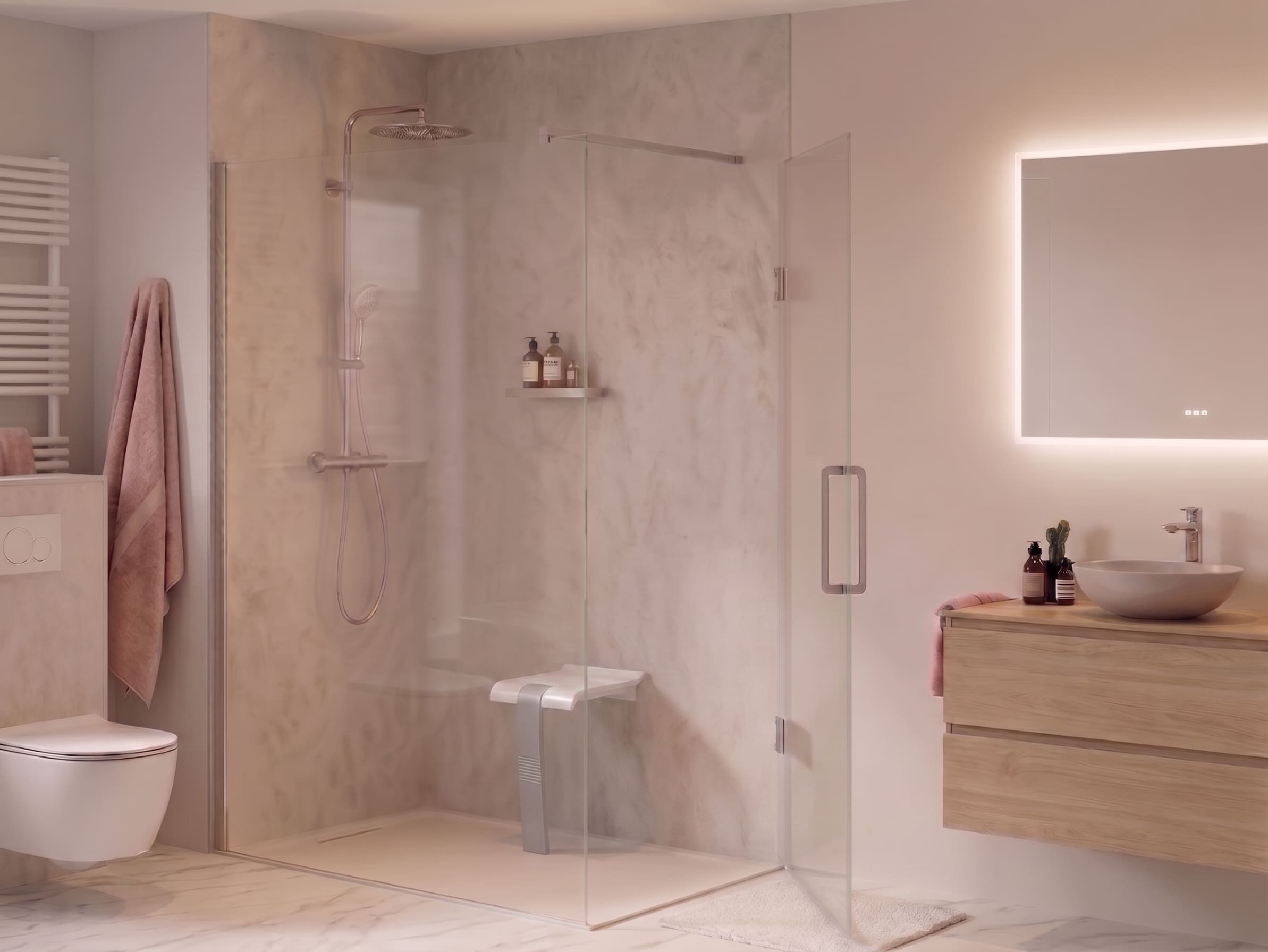 Binnen gemiddeld 3 à 5 dagen transformeren wij uw oude badkamer naar een moderne, veilige en onderhoudsvrije ruimte. Compleet verzorgd — van sloop tot laatste siliconenkit.